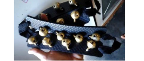 Gelang Kaki = Terdapat krincingan atau kelinting yang menghasilkan bunyi ketika penari melakukan gerakan gerakan tarian